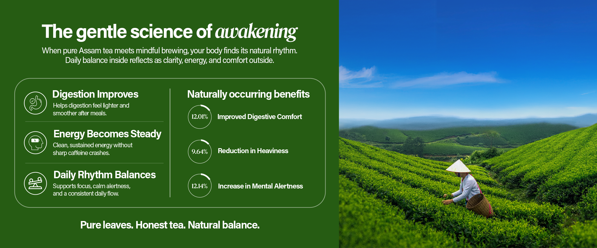 Rich, malty Assam black tea from Karbi Anglong. Hand-plucked, high-quality leaves ensure clean cuts, excellent aroma, and bright liquor in every brew.